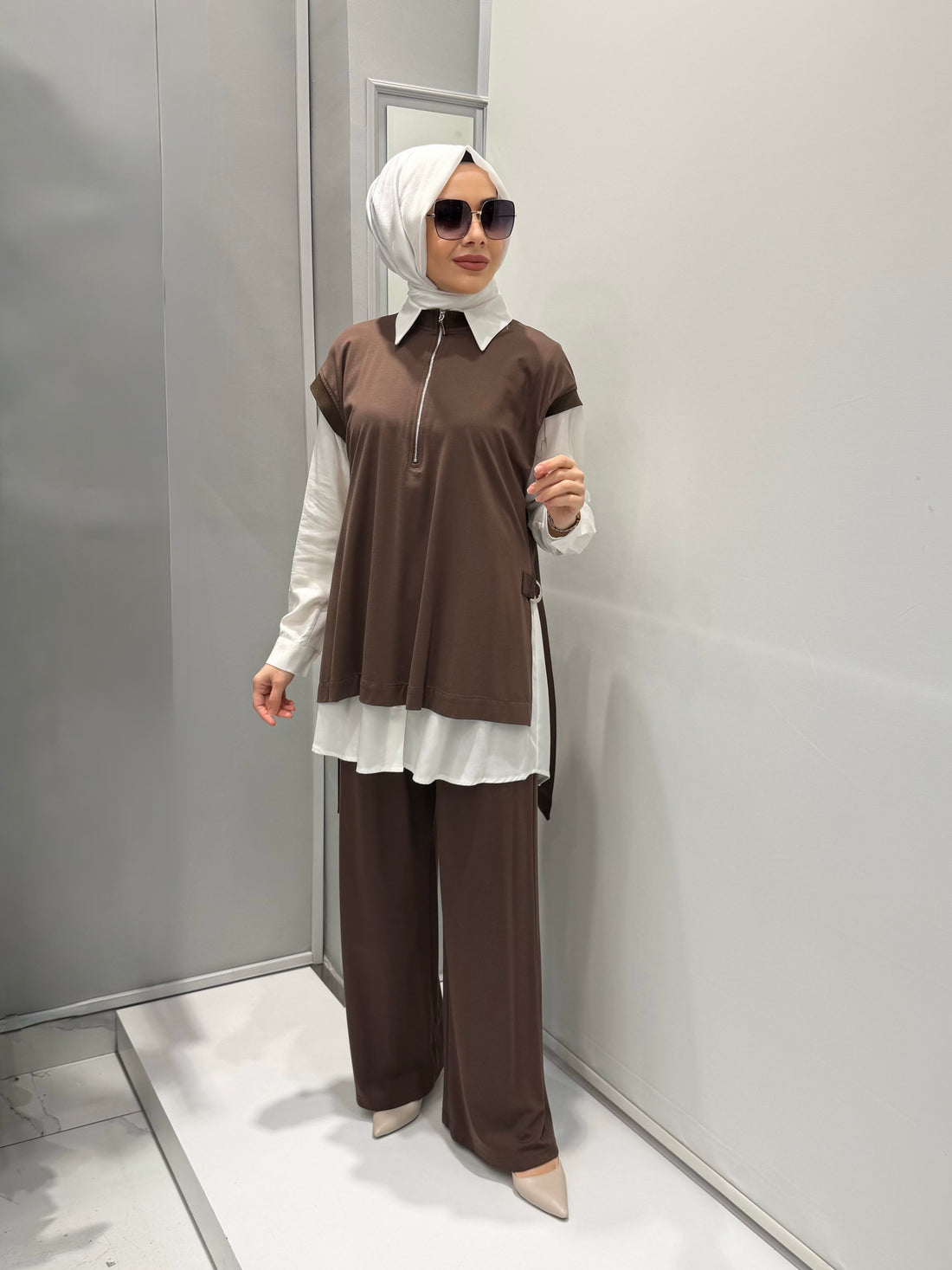 Nurcan Çetin Pantolonlu Takım Kahve