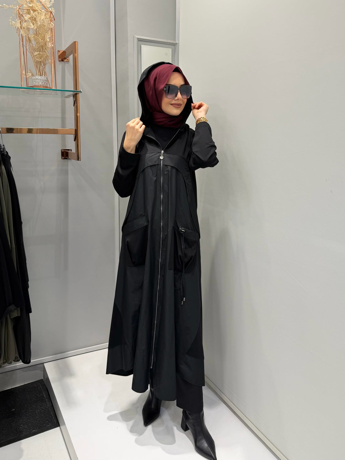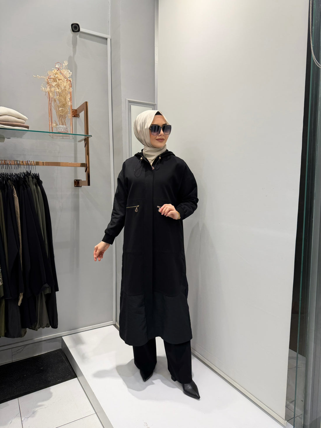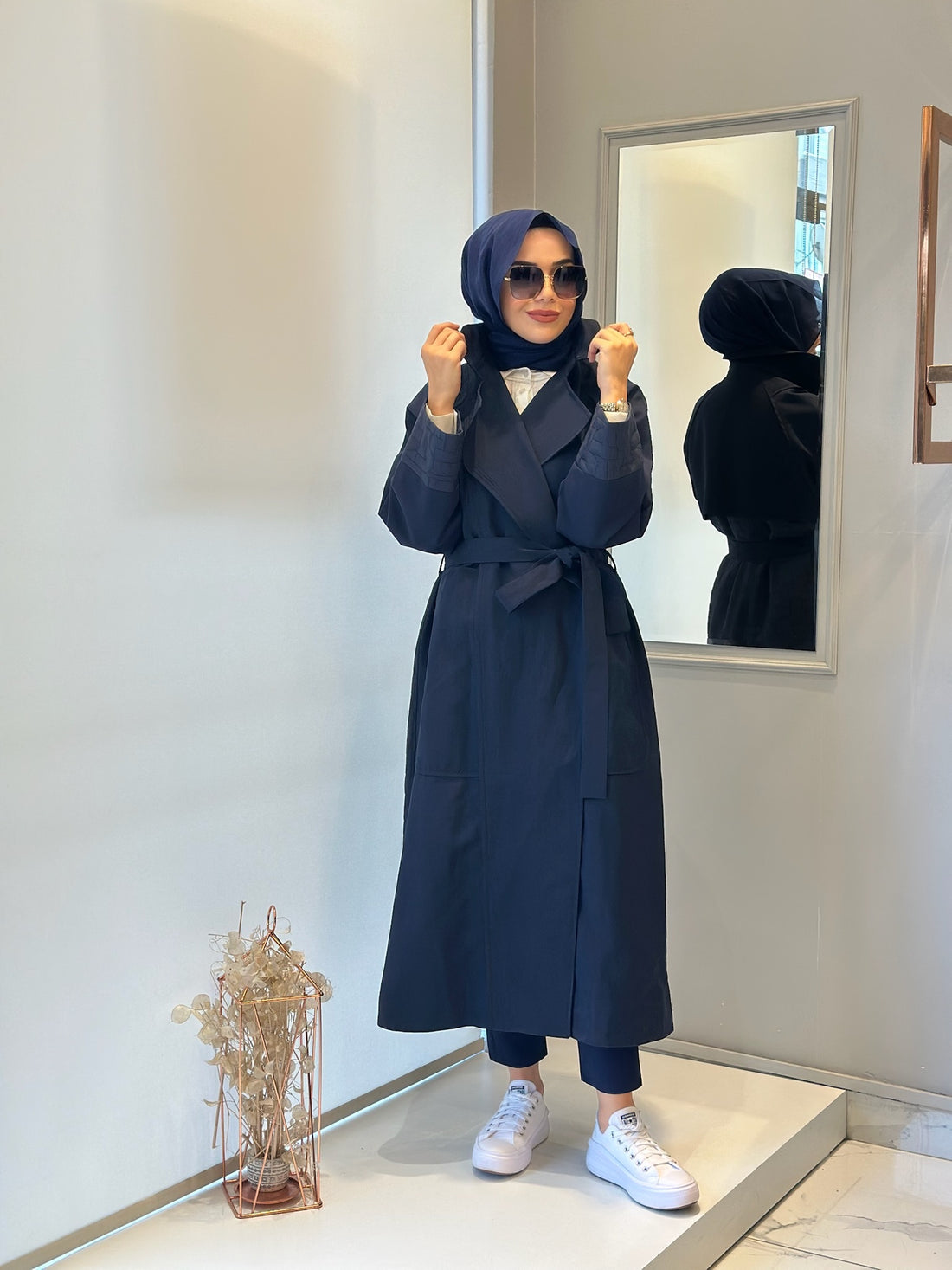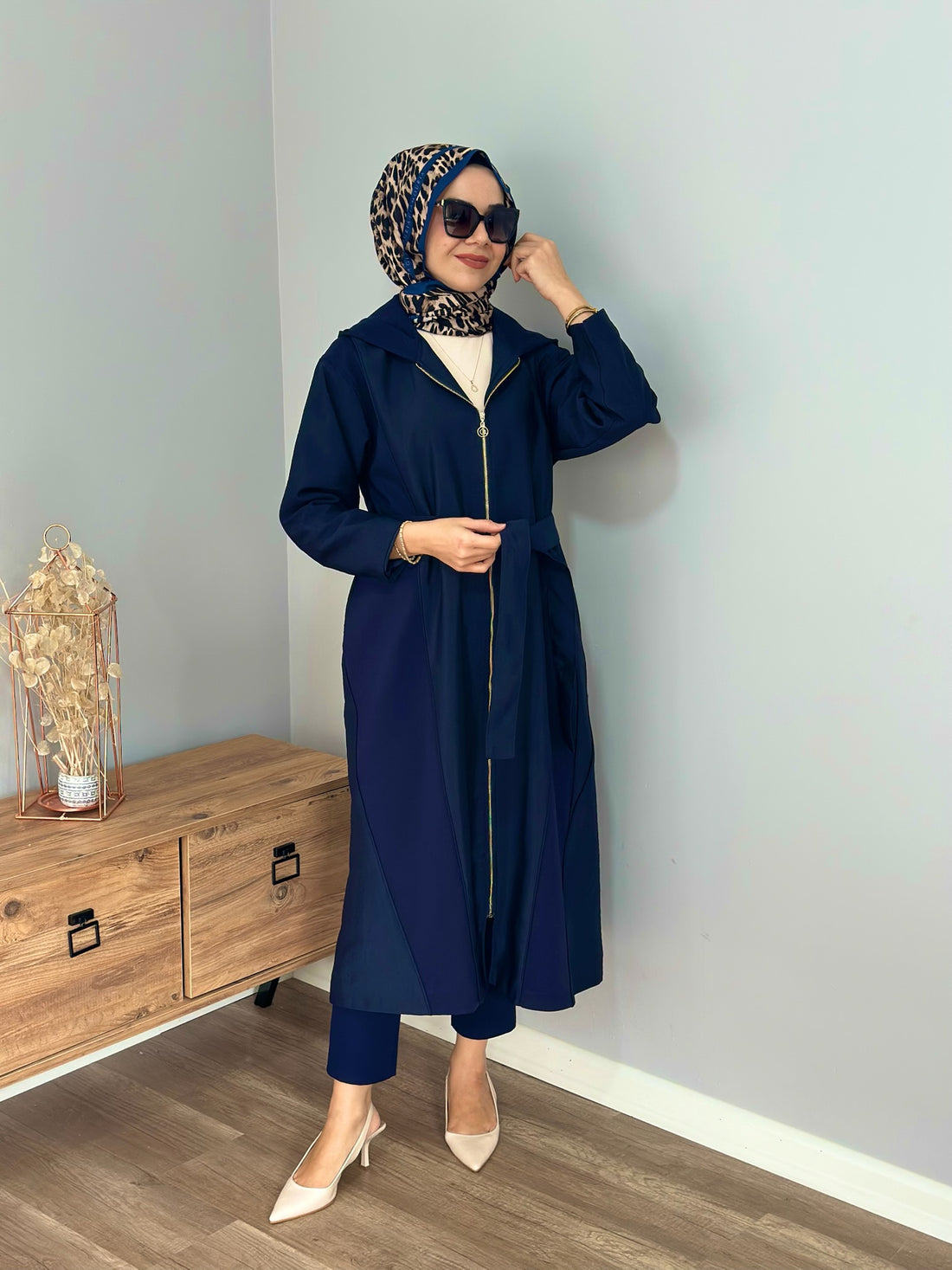 Renk: Lacivert.* Model: Uzun kesimli* Yaka/Kapüşon: Kapüşonlu bir tasarıma sahip.* Kapatma: üst ceplerin üzerinde gold...