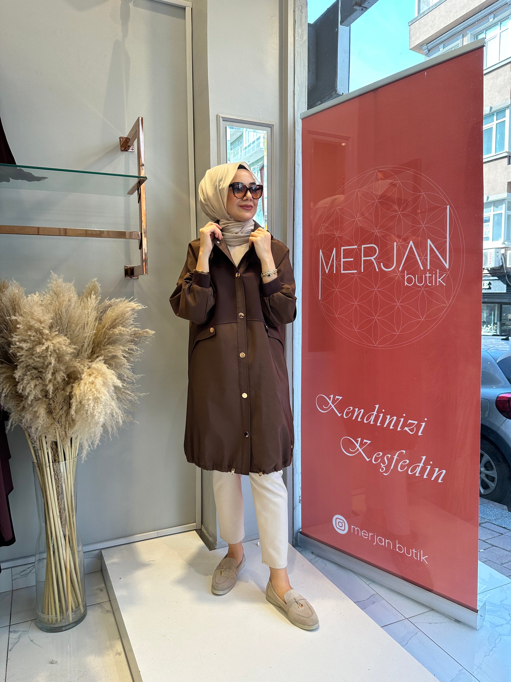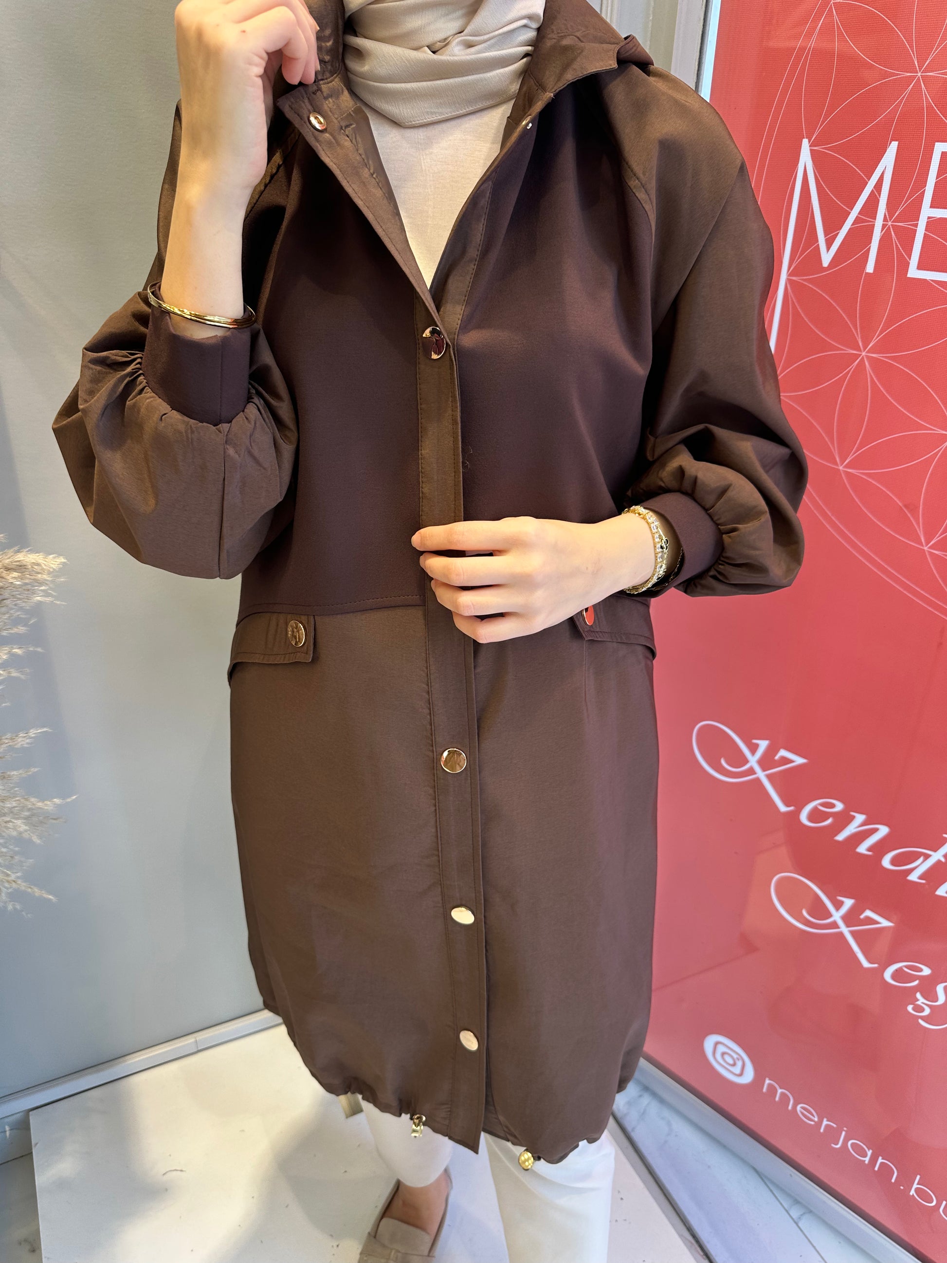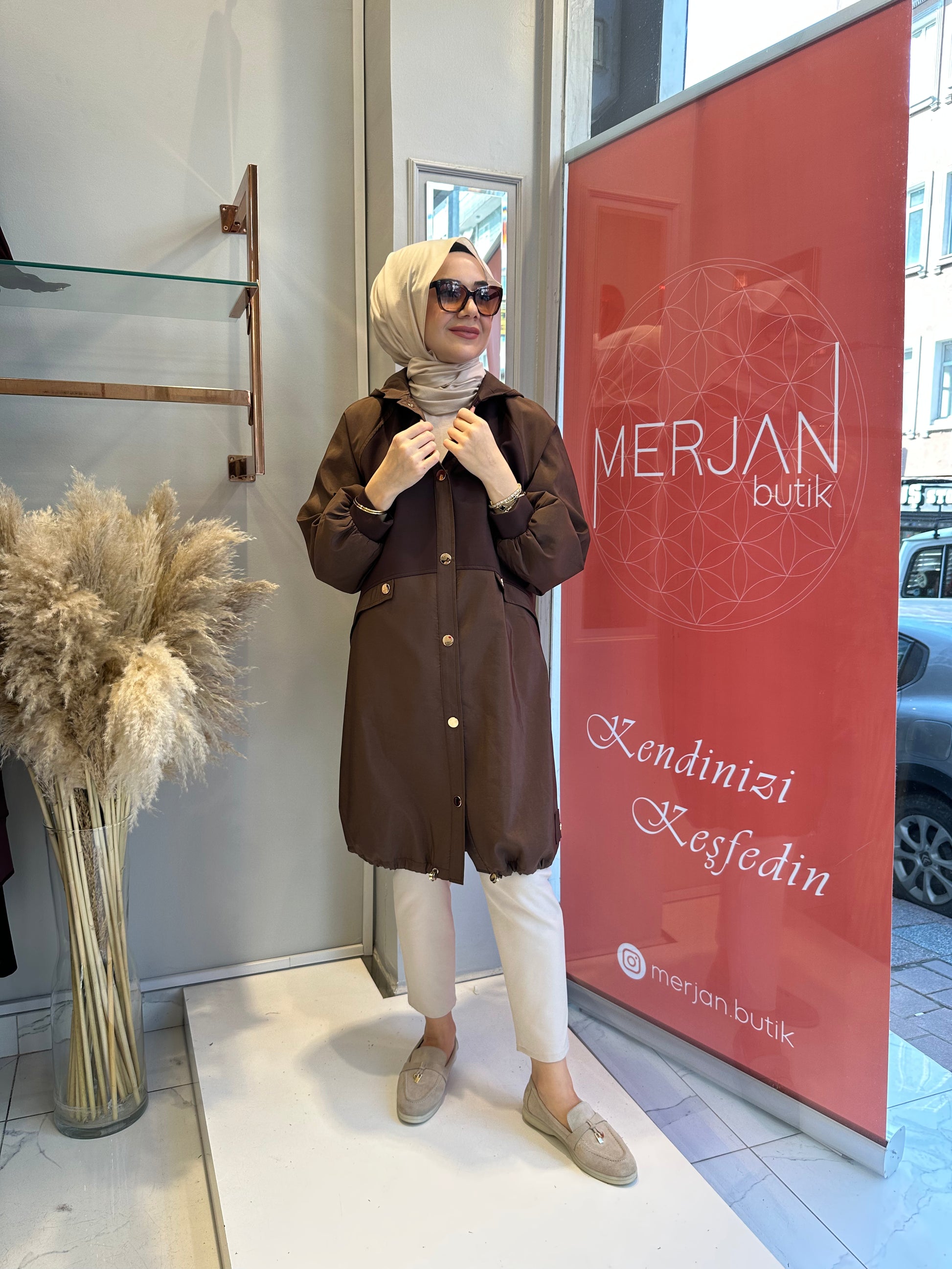 * Kumaş: mevsimlik, hafif ve rüzgarlık/trençkot tarzı bir kumaşa sahip.