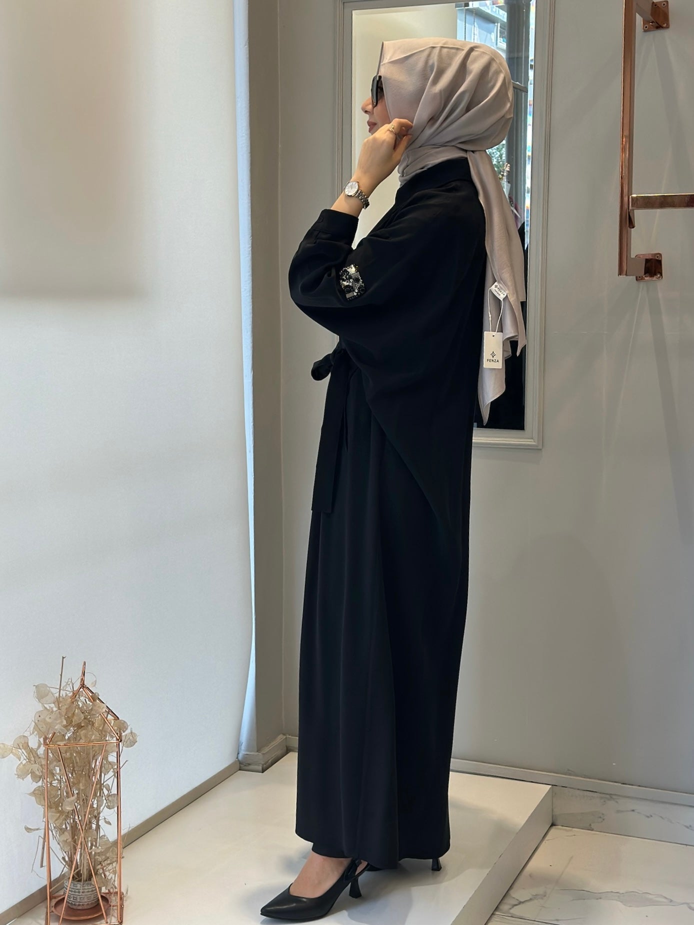 Ceremony Önden Fermuarlı Taş Detaylı İçten Kemerli Kap