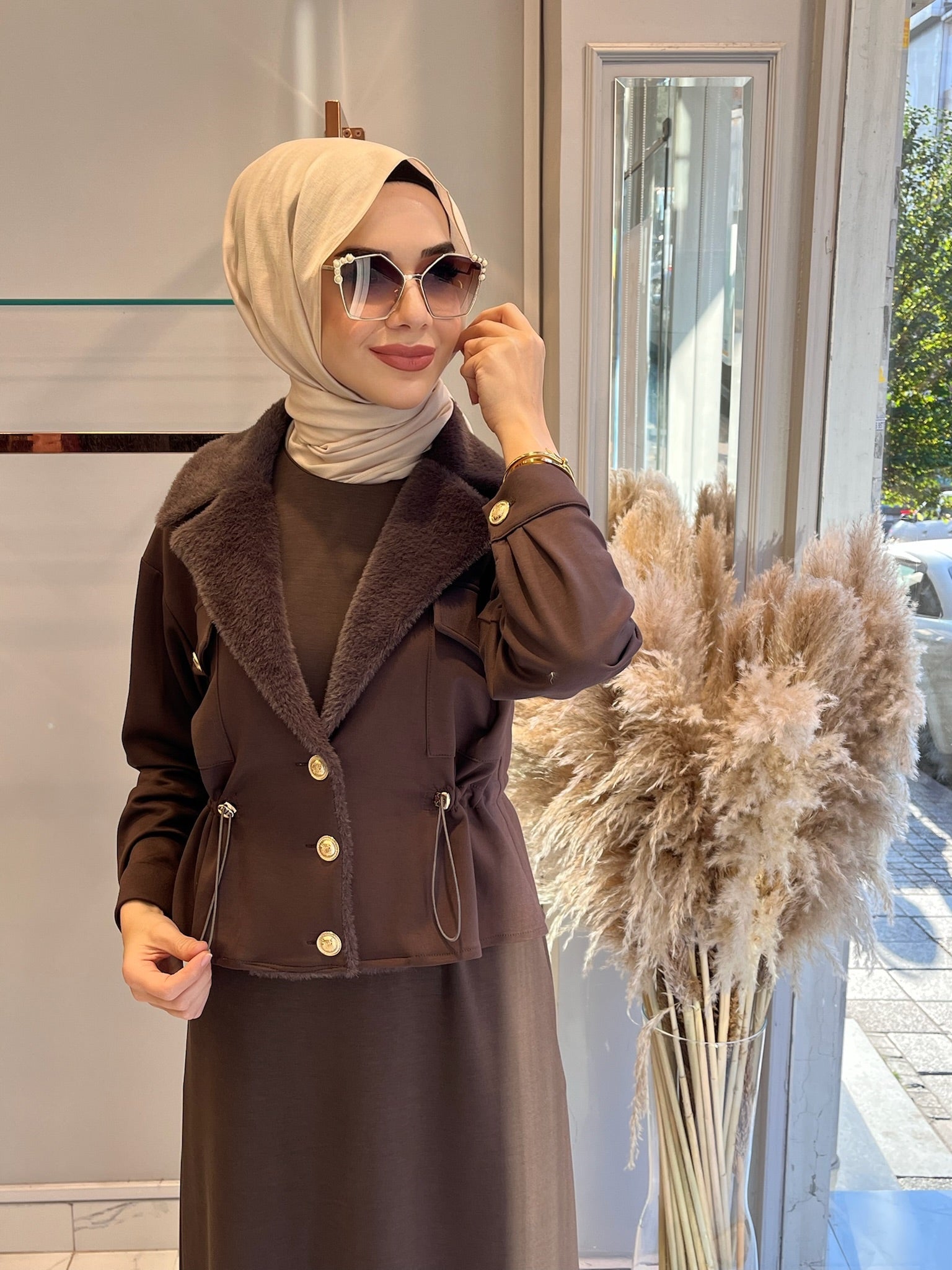 Kürk Yaka Detaylı Takım