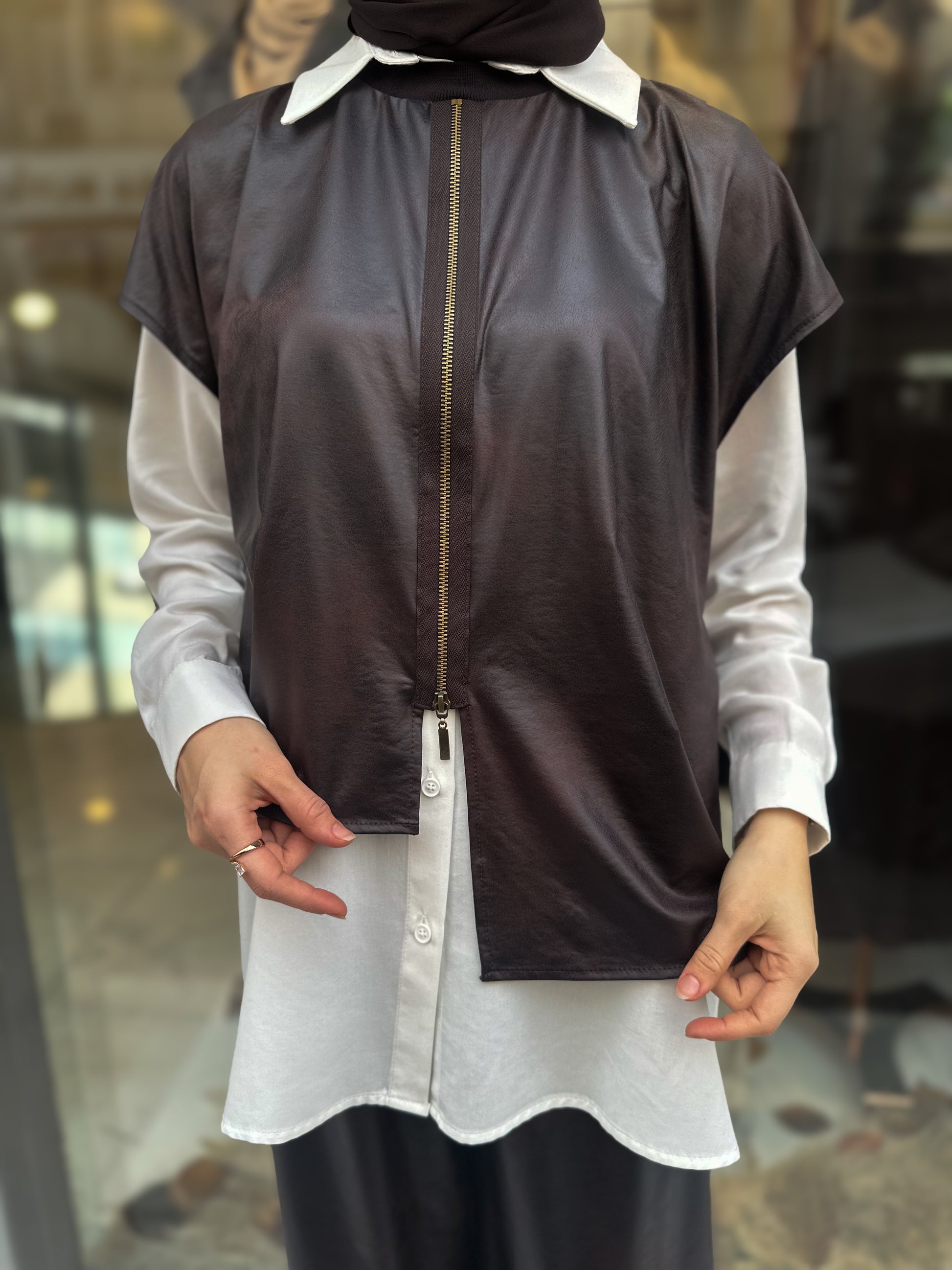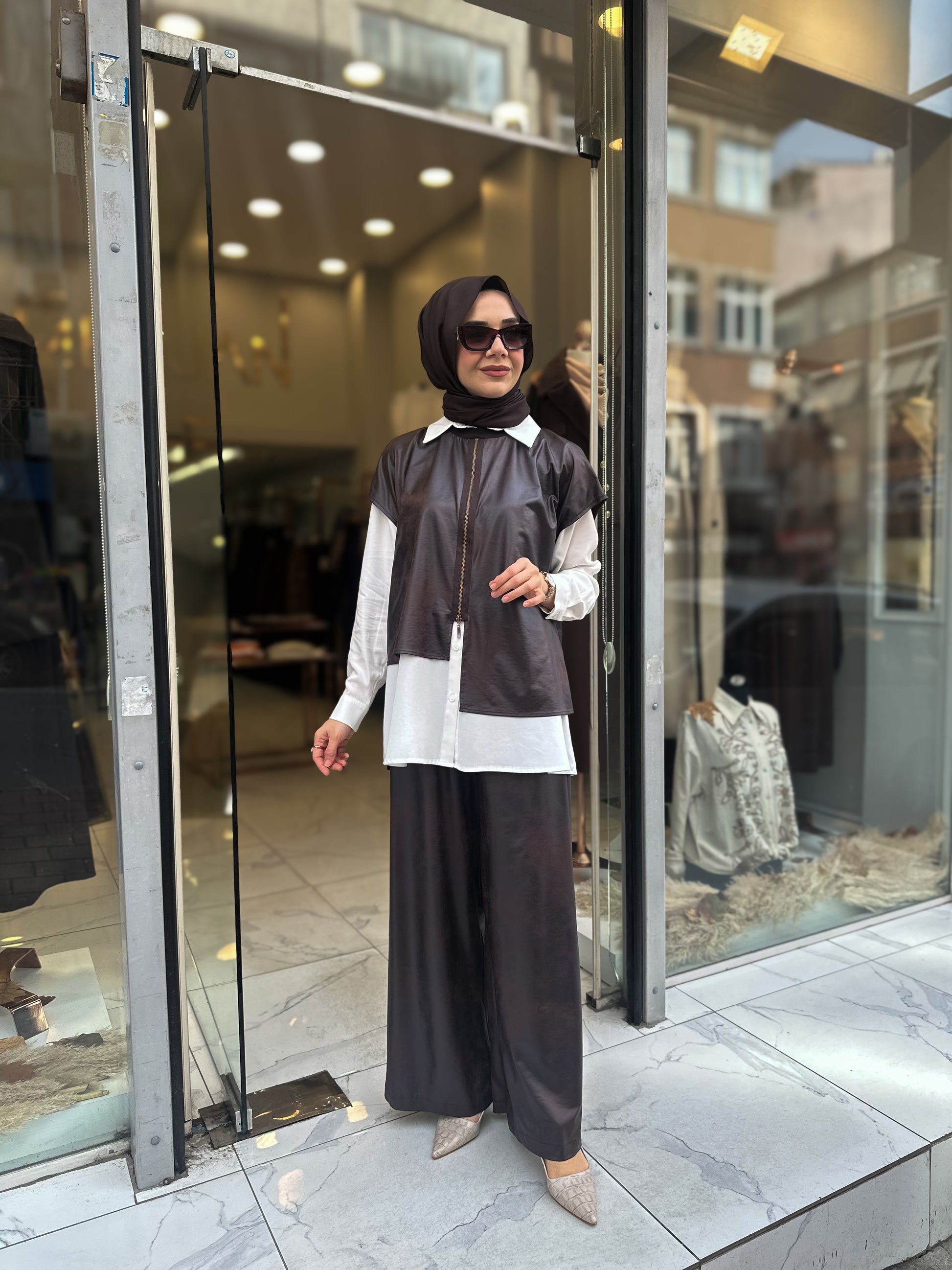 Kumaş Türü: Gömlek yumuşak pamuklu viskon kumaştır.Pantolon ve yelek deri görünümlü esnek kumaştır.
