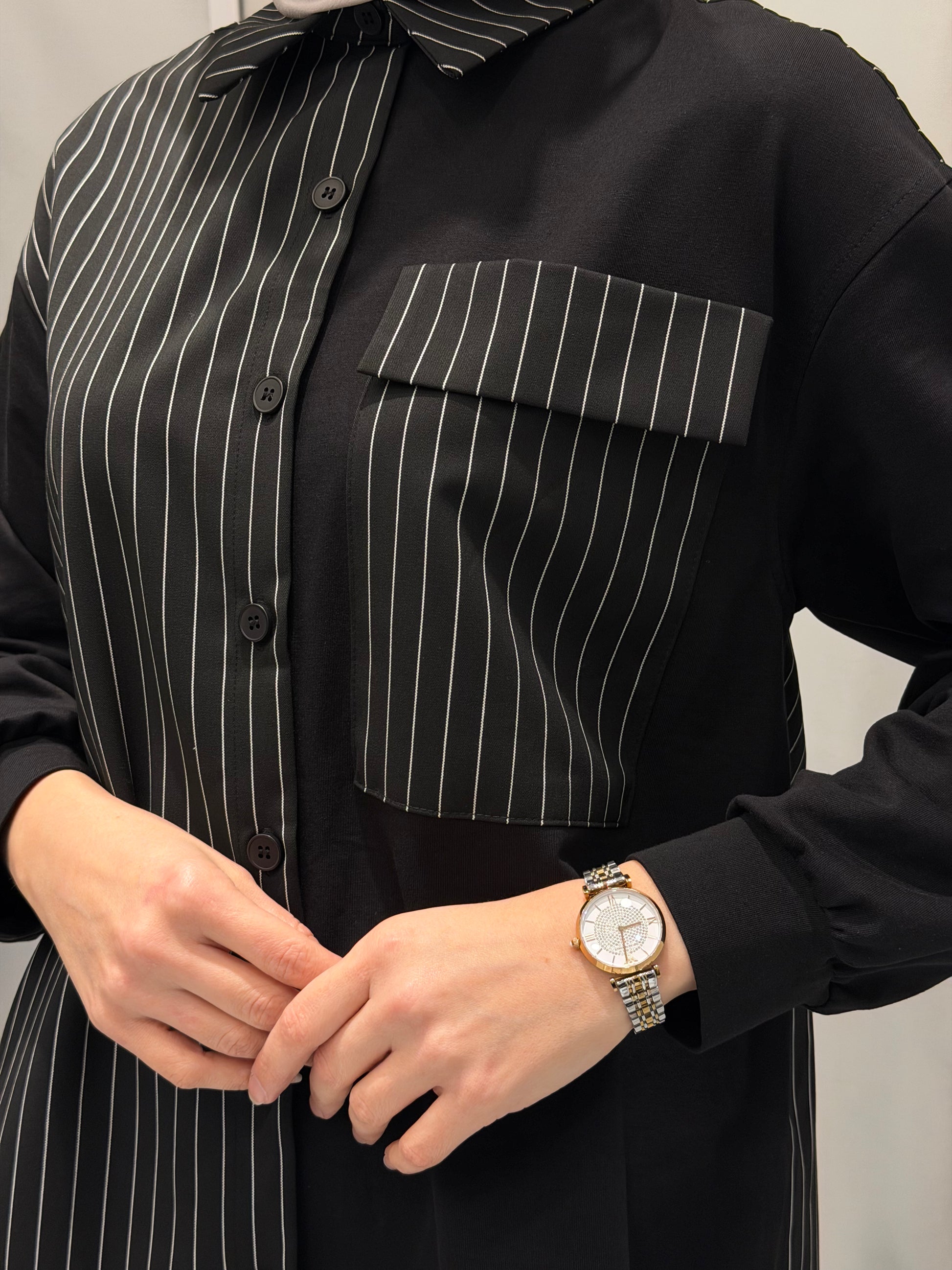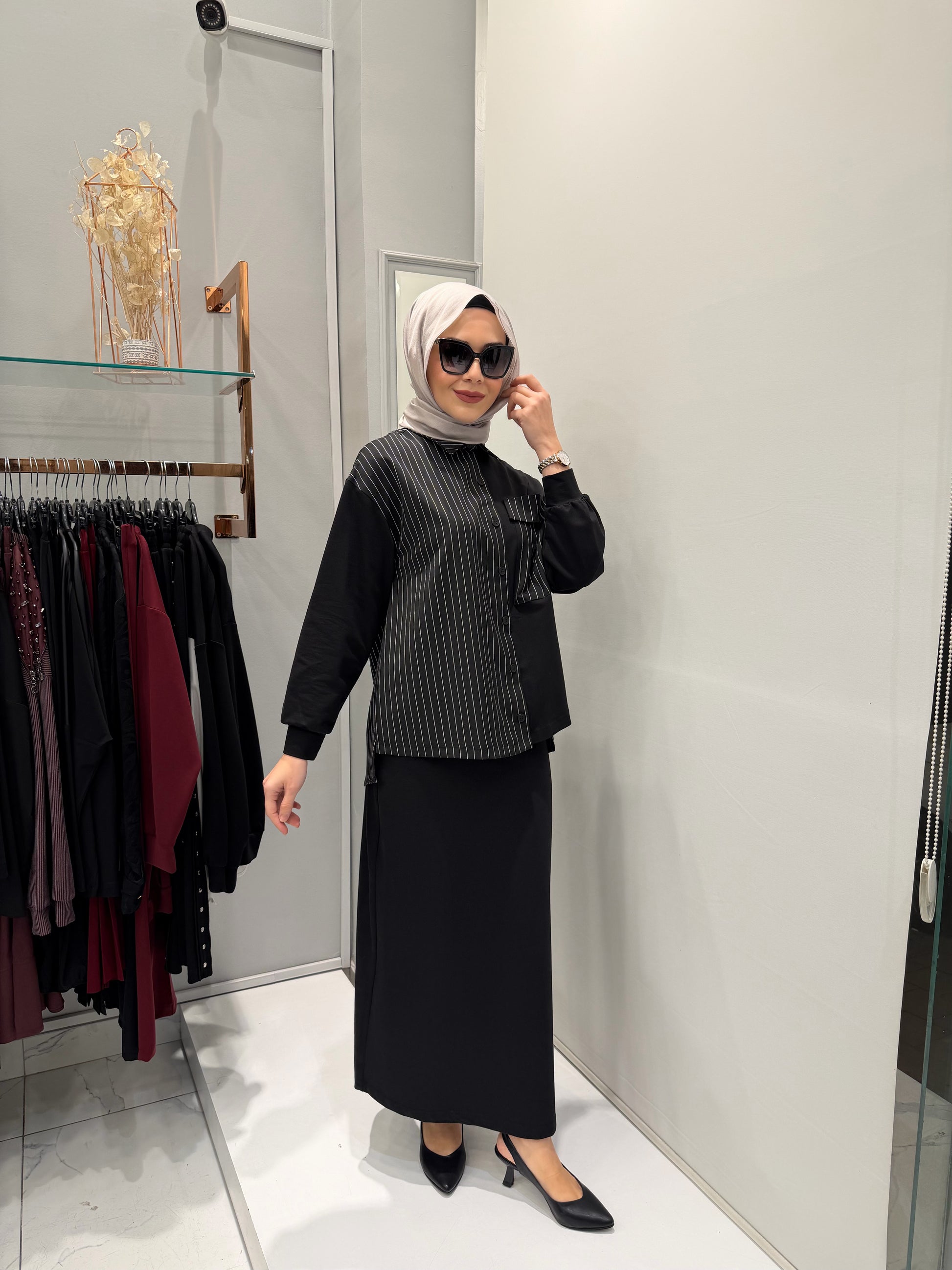 Nurcan Çetin Çizgili Detaylı Siyah Takım