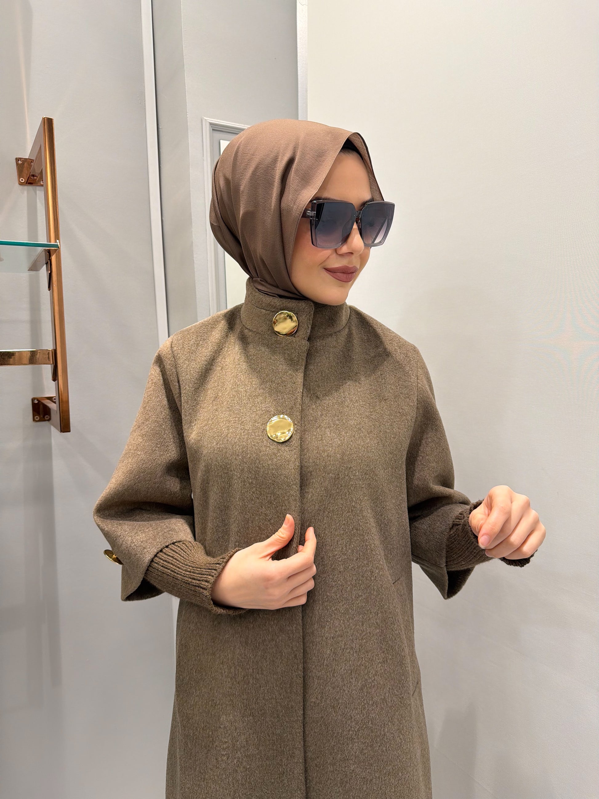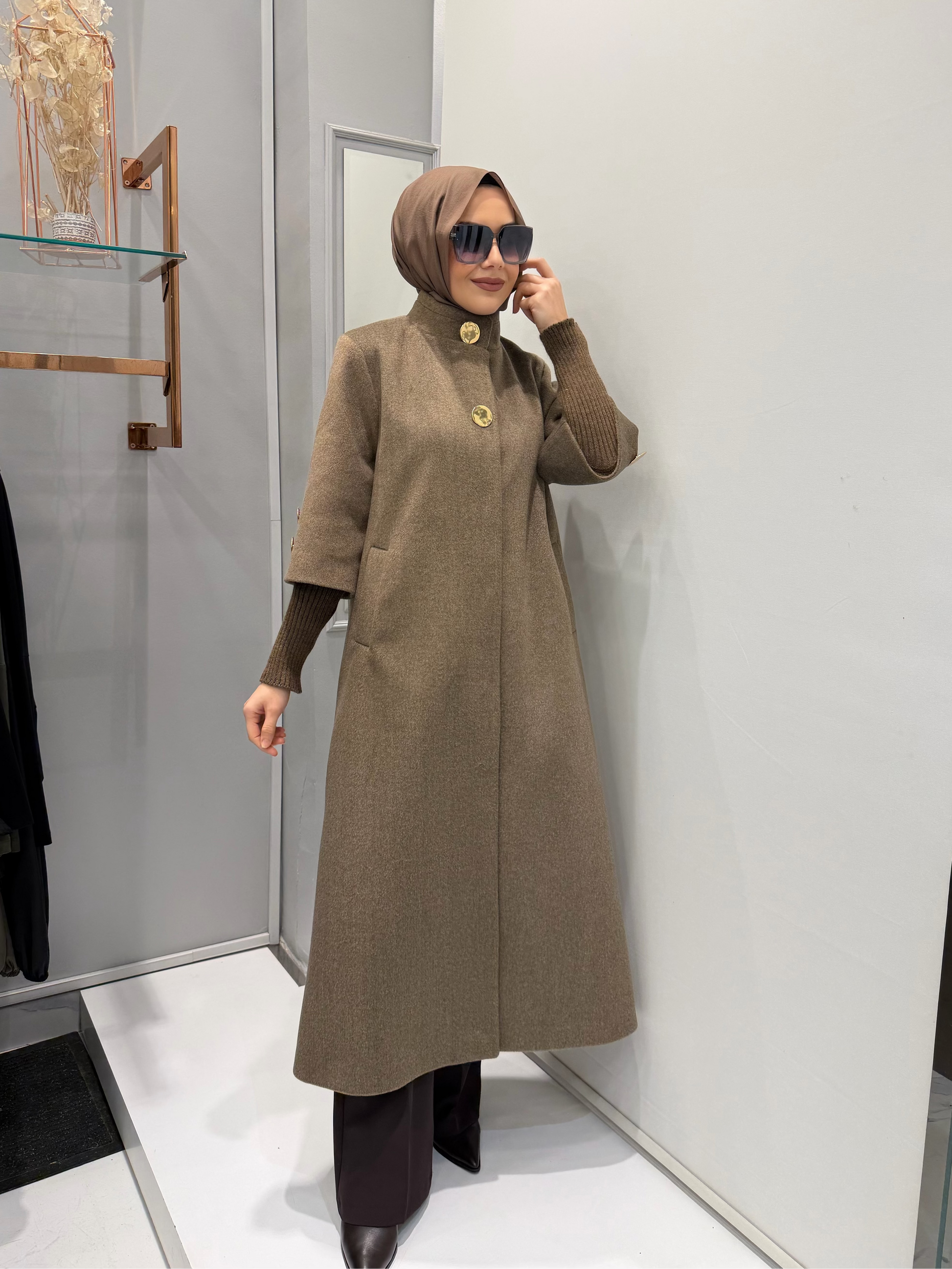 Triko Detaylı Kaşe Manto